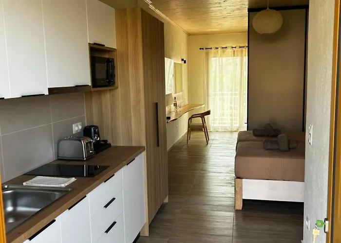 아파트에는 작은 부엌이 있어 손님들이 직접 식사를 할 수 있습니다. 이 34m² 아파트는 스키아도스아일랜드내셔널 공항에서 5km 떨어져 있습니다.